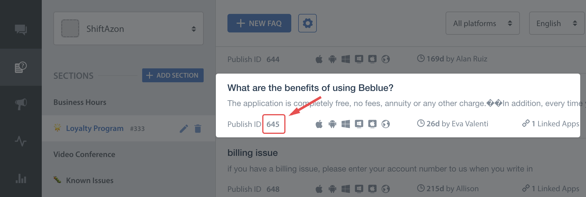 You can use this API to invoke a particular section of your FAQs with its FAQ section publish-id